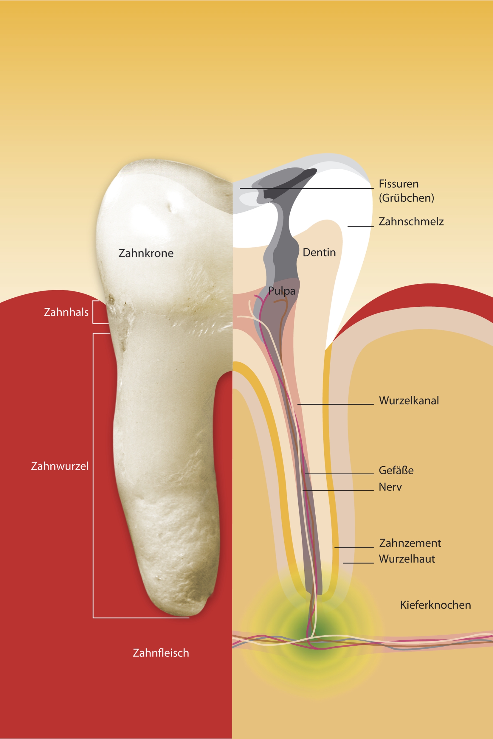 Bei einer Entzündung des Zahnmarks, auch bekannt als Pulpa, wird sie verwendet. Die Pulpa umfasst Nerven, Blutgefäße und Weichgewebe. Sie wird tatsächlich durch die harte Hülle des Zahnes aus Zahnschmelz und Zahnbein (Dentin) abgeschirmt. Bakterien können jedoch durch fortgeschrittene Karies oder Verletzungen leichtes Spiel haben: Sie können in die feinen Kanäle der Pulpa eindringen und hier die Entzündung hervorrufen.